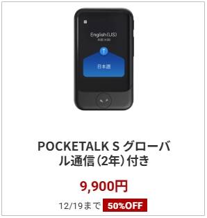 - ポケトークS 19,800円⇒9,900円【50%割引】