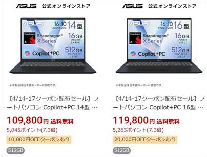 ASUS(エイスース)楽天市場店では【最大20,000円割引クーポン】配布中!