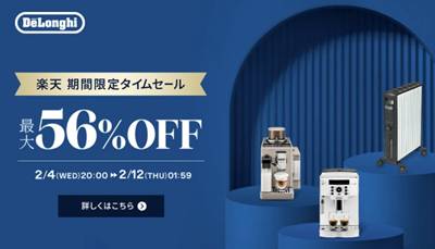 デロンギ楽天市場店では【最大56%割引】「期間限定タイムセール」開催!