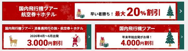 国内旅行・クリスマスセール&クーポン【最大20%割引】