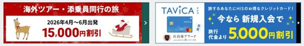 - HISのクレジットカード「TAViCA」新規入会【5,000円割引クーポン】