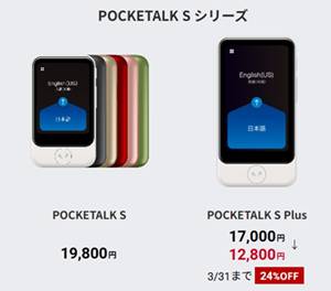 「ポケトークS Plus」通常 17,000円⇒12,800円【24%OFF】