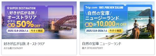 「トリップドットコム」では、次の「セール」「クーポン」配布中!