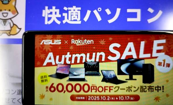 ASUS(エイスース)楽天市場店では、【最大60,000円割引クーポン】配布「オータムセール」開催!