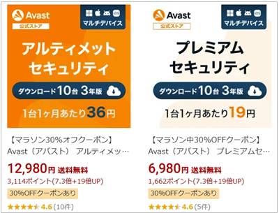 avastプレミアム 楽天・Yahoo!クーポン