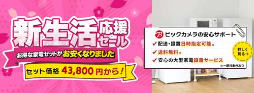 ビックカメラでは、生活家電がセットで【43,800円~】「新生活応援セール」開催中!