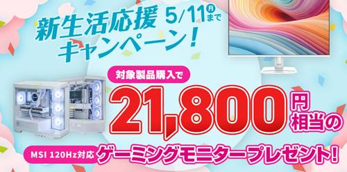 BTOパソコン「ストーム」では対象ゲーミングPC購入で【合計21,800円相当】ゲーミングモニターがもらえる「新生活支援キャンペーン」開催中!