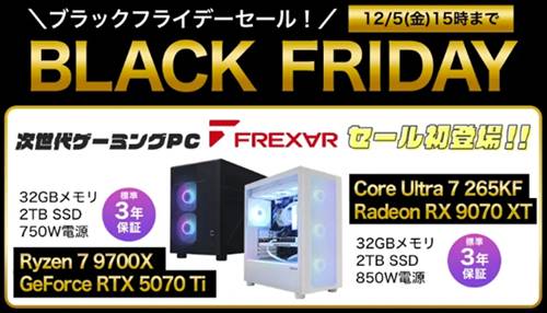 高品質パーツとオリジナル設計で信頼性を追求した次世代ゲーミングPCブランド「FREXAR」(フレクサー)がお買い得「ブラックフライデーセール」開催中です!