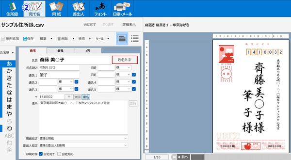 筆ぐるめの作成画面は大きく「おもて(宛名)」「うら(レイアウト)」の2つの管理画面に分かれています。