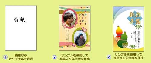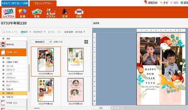 サンプルからデザインを選択するだけでほぼ年賀状造りが完成します。