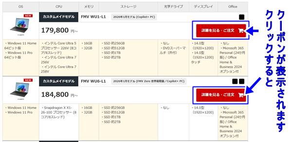 - 富士通パソコンのクーポンの併用方法!