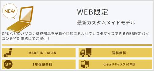 また、「カスタムメイドモデル」購入の場合、保証期間を無料で合計3年間に延長できます。