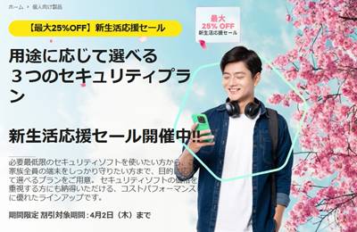 カスペルスキー公式サイトでは、【最大25%割引】「新生活応援セール」開催中です!